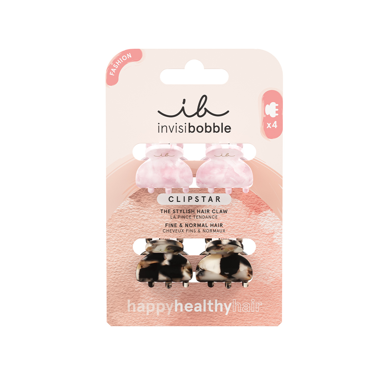 Набор заколок invisibobble CLIPSTAR Petit Four — это мини-крабики для волос с перламутровым эффектом в розовом и черном оттенках. Аксессуар надежно при этом бережно фиксирует небольшие пряди волос, мгновенно добавляя очарование любой прическе. Подходит для любых образов. Рекомендована для нормальных и тонких волос.
