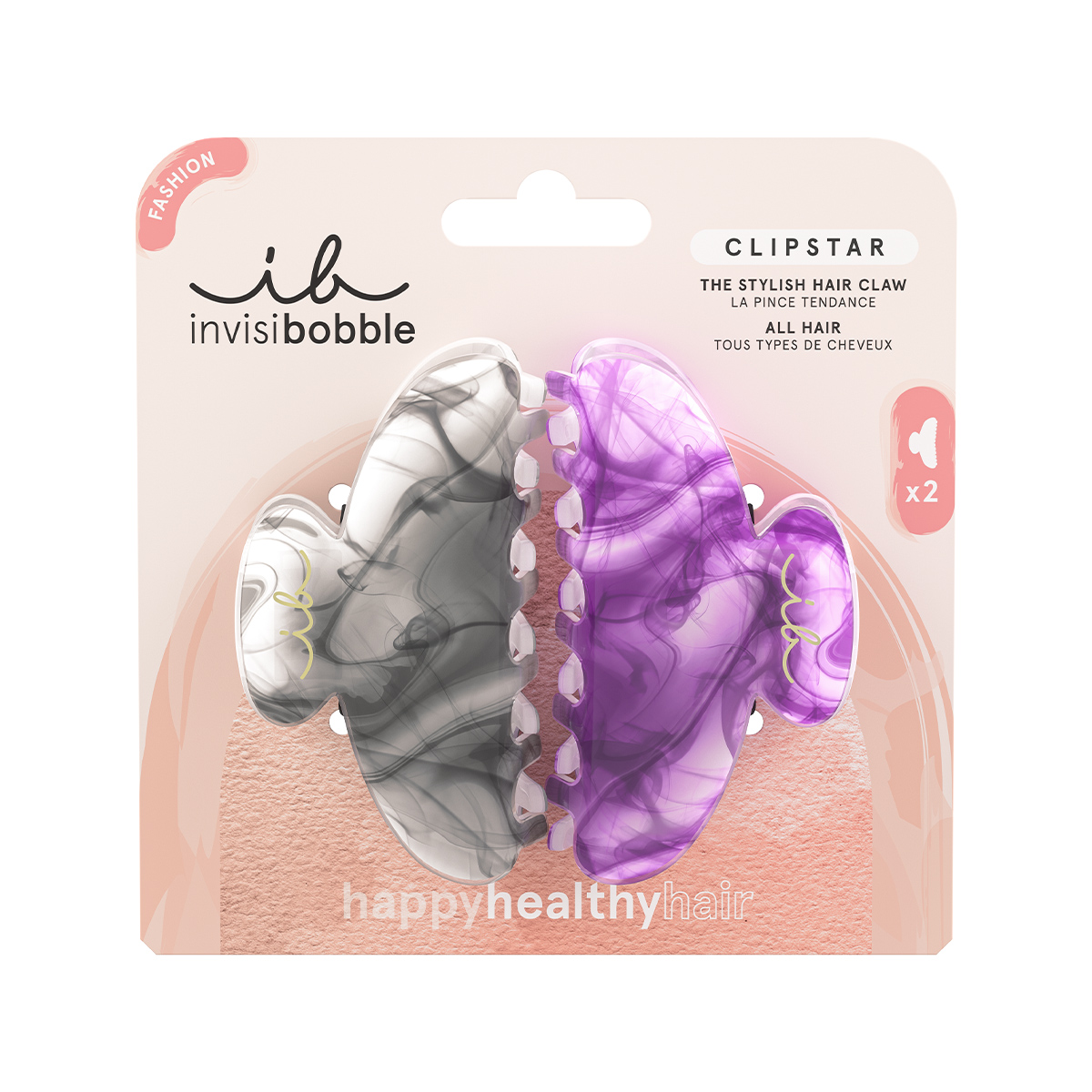 invisibobble CLIPSTAR My Rainboo – это два трендовых аксессуара в сером и пурпурном оттенках, украшенные элегантным узором, напоминающим мрамор. Крабик позволяет завершить образ всего за несколько секунд: пара движений – и прическа готова! Заколка надежно при этом бережно фиксирует волосы в прическе в течение всего дня. Для любых образов, для всех типов волос.