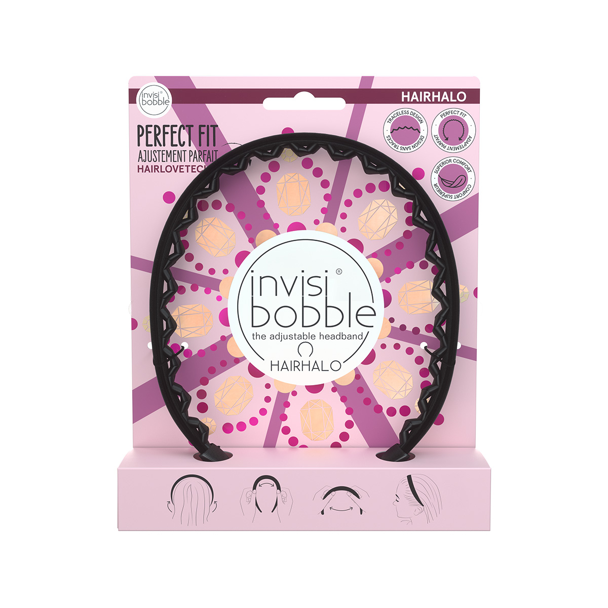 HAIRHALO – аксессуар для волос, который подойдет для создания и праздничных, и повседневных образов. Уникальность ободка – в пластичной конструкции, которая адаптируется к форме головы, не вызывая дискомфорт. Просто наденьте ободок на распущенные волосы и зафиксируйте его на голове.