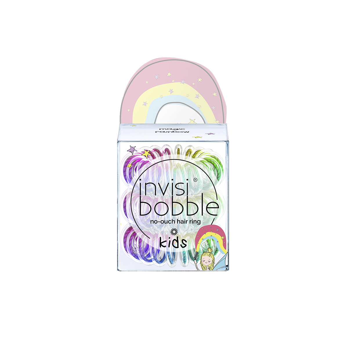 С invisibobble® KIDS сбываются детские мечты: можно даже превратиться в очаровательную фею, добавив в образ немного волшебной пыли с резиночкой оттенка Magic Rainbow (разноцветный)! Уменьшенная в размере по сравнению с моделью ORIGINAL, спиралевидная форма резиночки KIDS надежно фиксирует прическу, не оставляет заломов и не вызывает головную боль, что делает invisibobble KIDS идеальным инструментом для создания причесок разной сложности для детей. Кроме того, резинки-браслеты invisibobble не намокают и не вызывают аллергию при контакте с кожей, поскольку изготовлены из искусственной смолы.