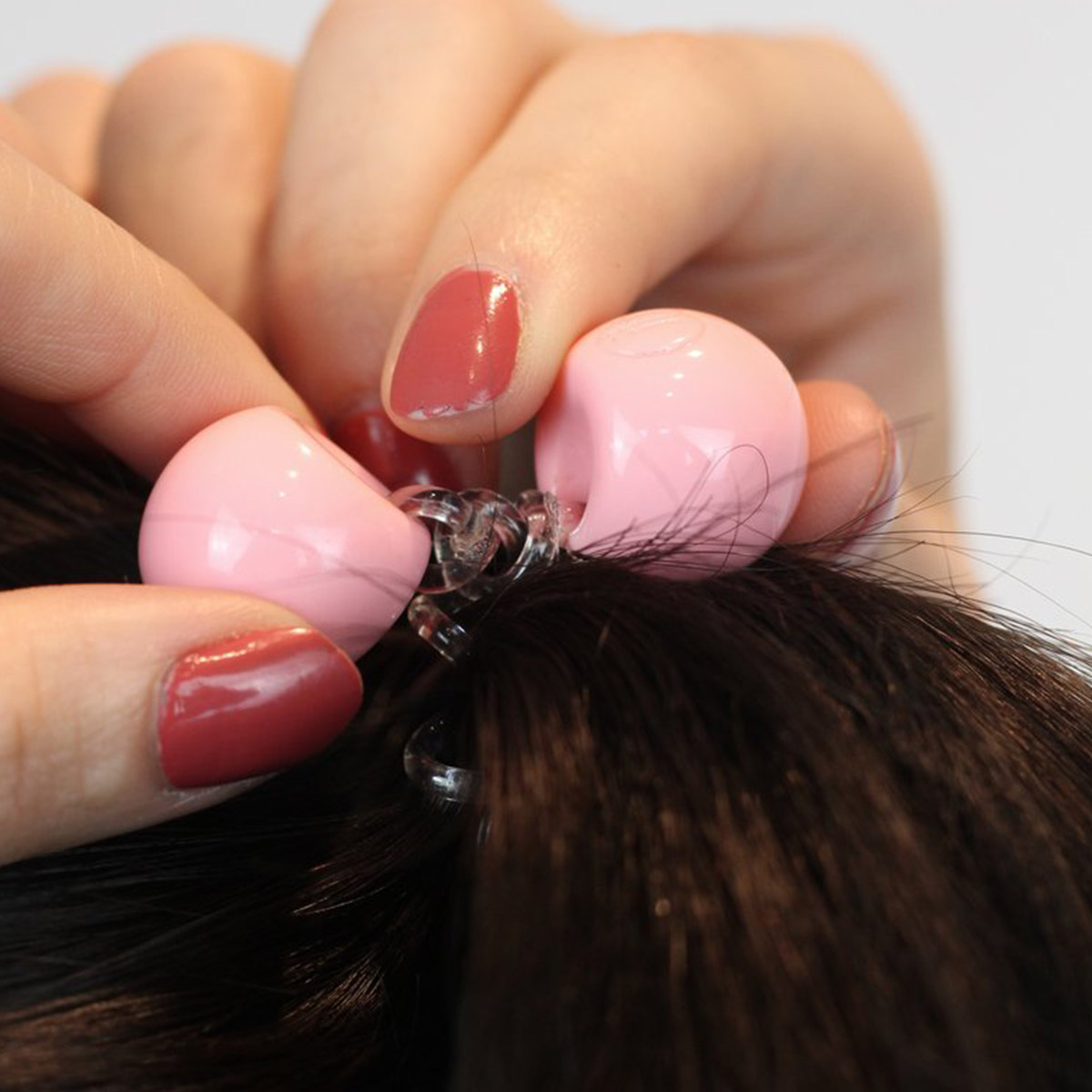 TWINS – резинка с шариками для создания самых необычных и веселых причесок, например, пяти маленьких пучков. Разделите волосы на пять равных частей и закрутите каждую часть в тугой жгут, оберните его несколько раз вокруг себя, чтобы получился маленький пучок. Оберните спираль вокруг волос, закрутите шарики у концов спирали и закрепите прическу.