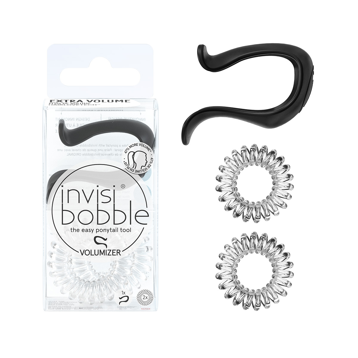Простая и стильная прическа всего за пару движений? Легко! invisibobble представляет набор аксессуаров для создания объемного хвоста и придания ему красивой формы invisibobble VOLUMIZER Pretty Dark. В наборе — 2 любимые резиночки ORIGINAL и новый аксессуар в коллекции бренда — VOLUMIZER в коричневом оттенке. VOLUMIZER удобно использовать: соберите волосы в хвост с помощью резиночки ORIGINAL из набора. Разделите хвост на две равные половины: нижнюю и верхнюю. Посередине между ними вертикально установите VOLUMIZER и нажмите на него, чтобы зафиксировать в волосах. Объемная прическа готова! Как и все аксессуары invisibobble, VOLUMIZER не оставляет заломов и подходит для всех типов волос.